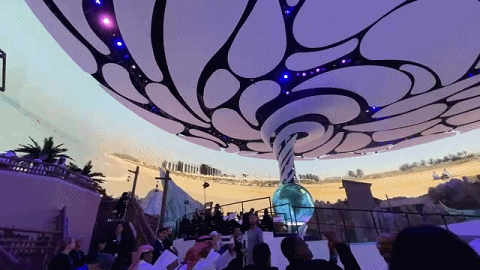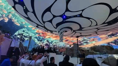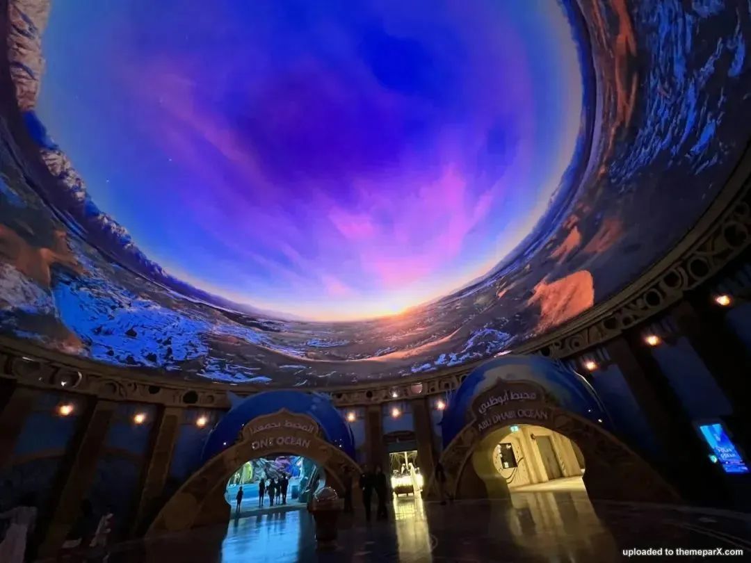 一個(gè)巨大的虛擬漩渦照亮整個(gè)海洋星球,將整場(chǎng)表演推向高潮,它既象征著海洋與人類息息相關(guān),也標(biāo)志著阿布扎比海洋世界正式向公眾開(kāi)放。