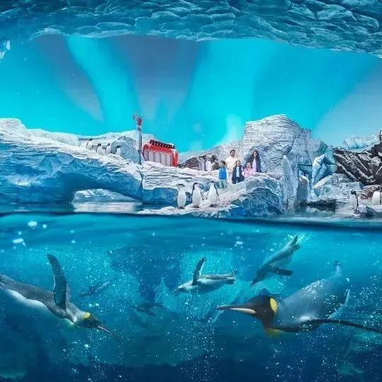 南極是地球兩大極地的另一極,是企鵝生活的家園。該區(qū)通過(guò)全光譜動(dòng)物園照明系統(tǒng)復(fù)刻南極洲的季節(jié)變化,確保企鵝的最佳生存條件。