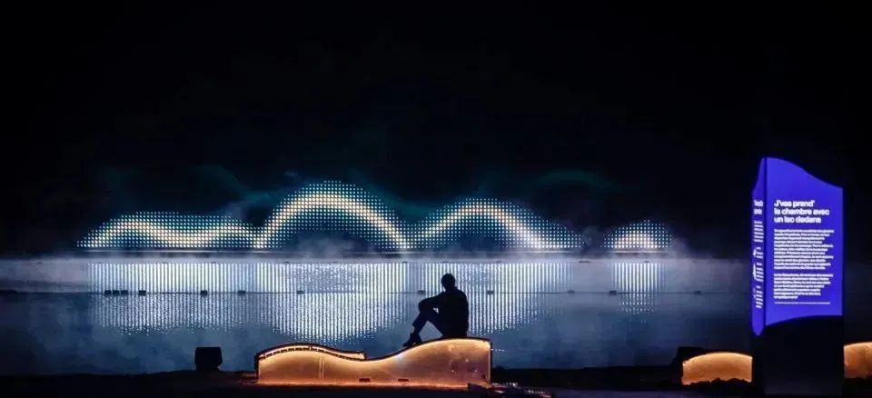 在 Lac Beauchamp市政海灘,游客穿過被壯麗燈光環(huán)繞的小路,會看到一張介紹Lac Beauchamp周圍的動物群海報。當(dāng)太陽落山,一座雕塑在燈光芭蕾舞中栩栩如生,他們是漂浮的 LED 屏幕,是向冰川遺產(chǎn)致敬的數(shù)字藝術(shù)作品。
