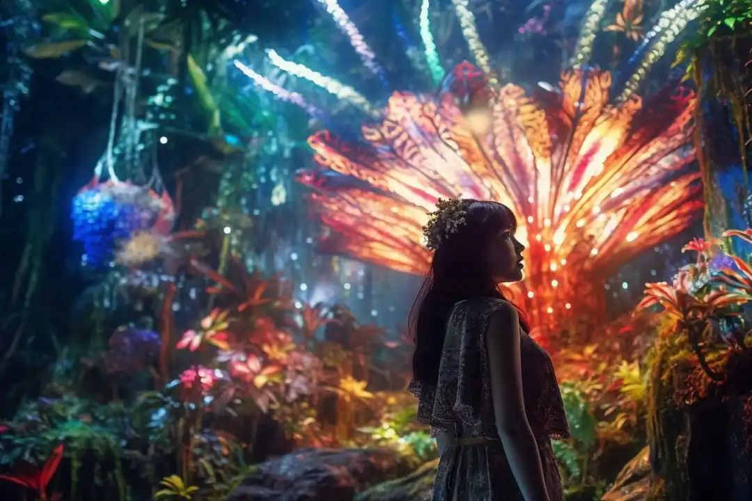 此次,LIGHTHOUSE團(tuán)隊(duì)推出了“奇異花植”光影裝置系列,將魔幻的動態(tài)視覺效果注?其中,在上海這座魔力之都為觀眾帶來獨(dú)特而難忘的視覺盛宴。該系列從熱帶雨林的花植中汲取靈感,設(shè)計(jì)并添加紋理和材料,融合了不同的“色彩調(diào)色板”,結(jié)合自然和環(huán)境元素,進(jìn)一步增強(qiáng)了展示效果,營造出一個完全沉浸式的觀賞體驗(yàn)。